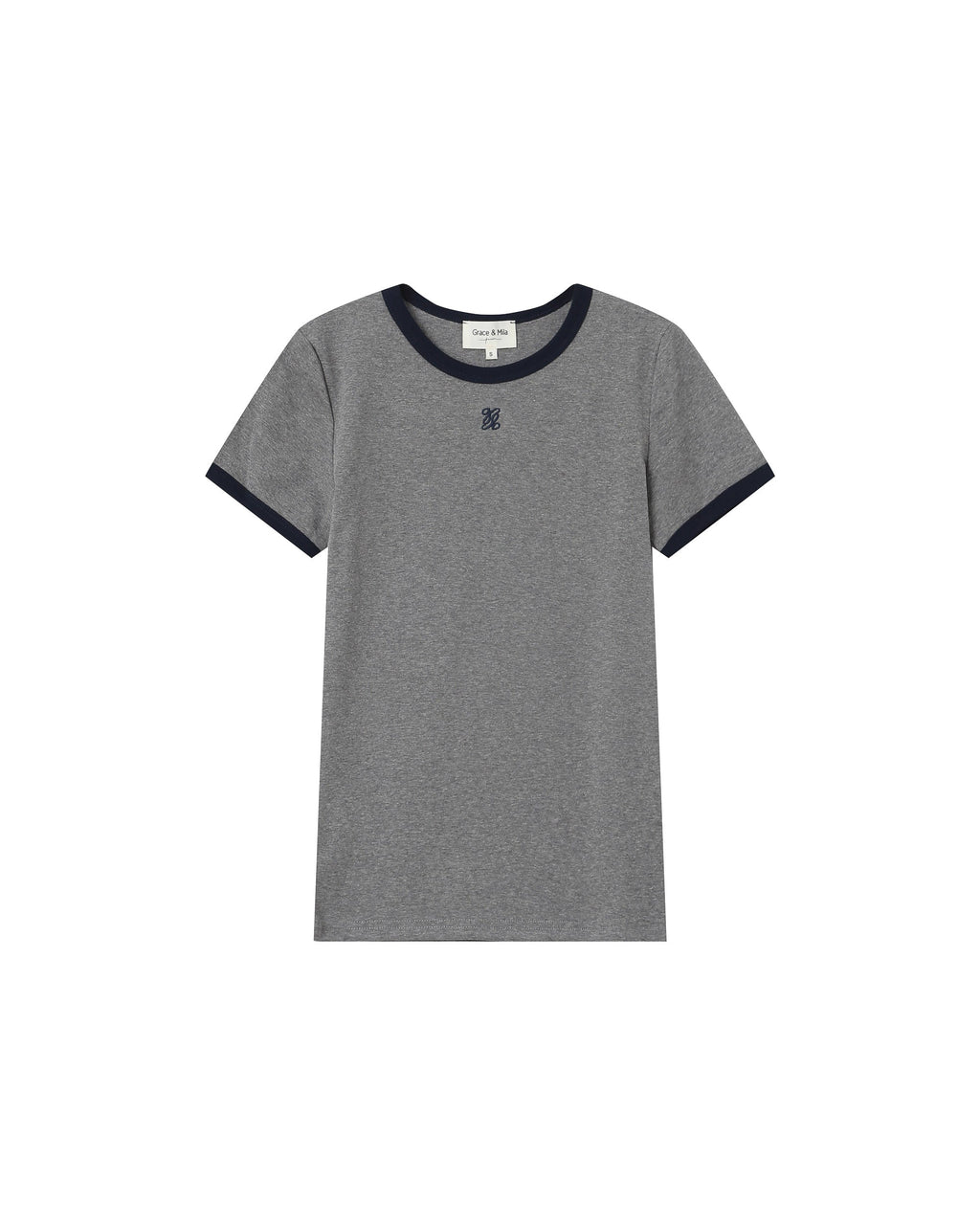 Product details: - Cotton jersey t-shirt - Fitted cut - Short sleeves - Crew neckline - Ribbed contrast trim at neckline and sleeve hems - Exclusive G&M monogram embroidered on the front Sizing advice : Take your regular size. Available from XS to XL to suit all women's curves. Our model is around 172 cm tall, has a waist of 60cm, hips of 87cm and is wearing a size S.