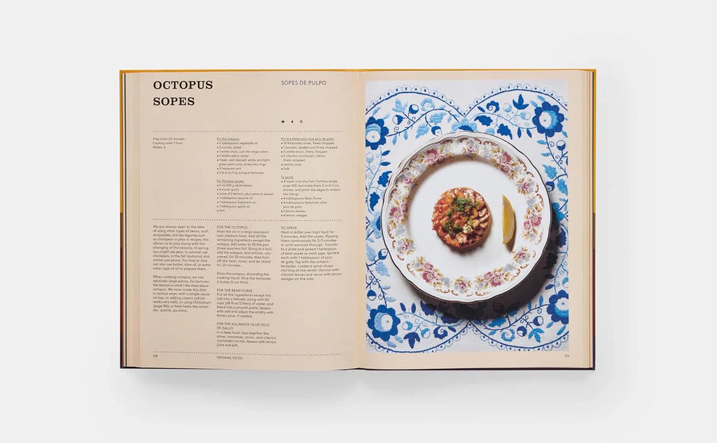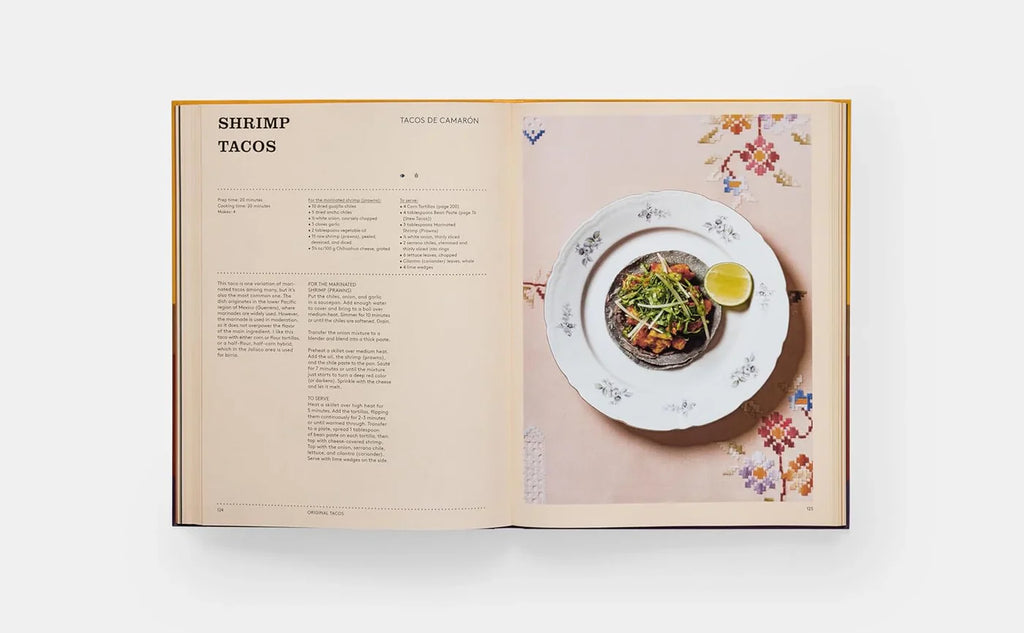 Equal parts culinary history and cookbook, the book features 100 recipes designed for home cooks, arranged into two main chapters: Classics, which features street tacos; and Originals, which explores Olvera’s contemporary reinventions of well-known originals. Classic recipes include Fish Tacos from northwest Mexico; Chicharron Tacos from Monterrey; Chorizo Tacos with spinach; and Steak Tacos common at street vendor tricycles in Mexico City. Contemporary reinventions include Brussels Sprouts Tacos with spicy peanut butter; Ceviche Tacos; Pork Belly Tacos with smoked beans; and Eggs & Green Bean Tacos inspired by Olvera’s childhood breakfasts.