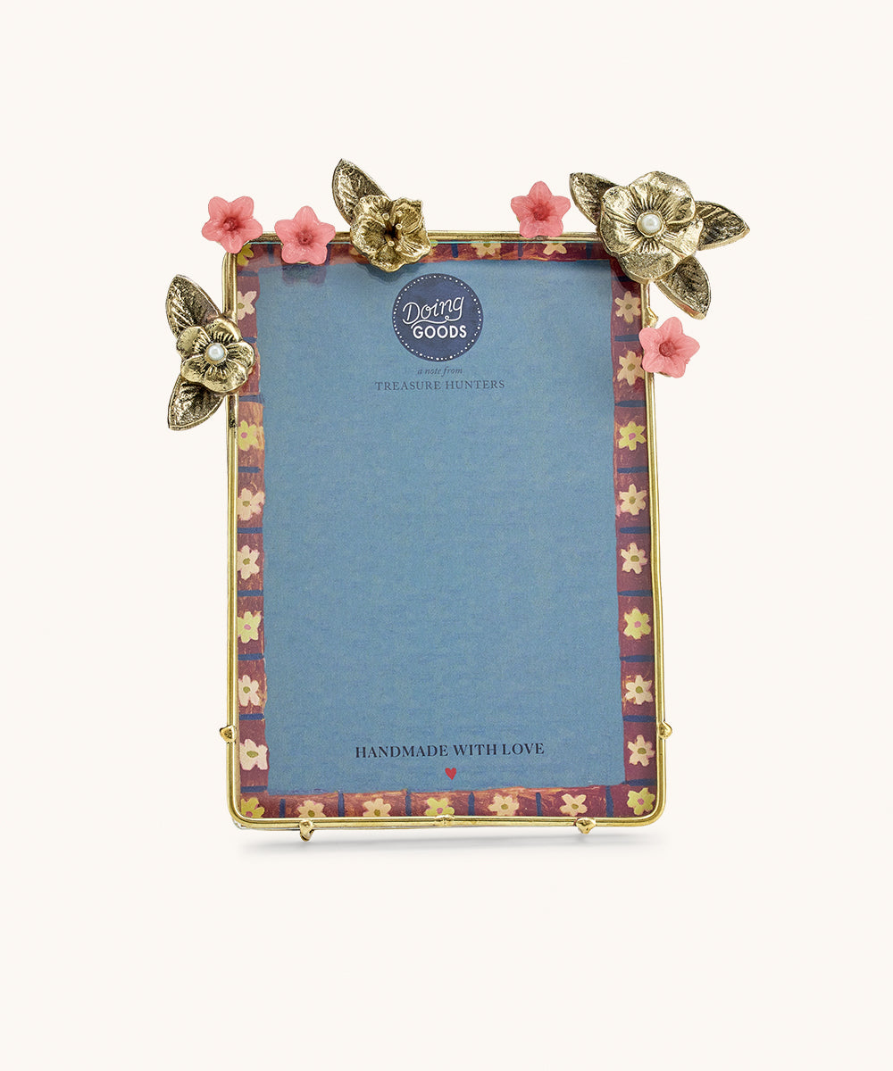 Add a romantic and floral touch to your interior with the Amber Wild Flower Frame Large. This handcrafted photo frame is made from a beautiful combination of brass, resin, and glass, and is richly decorated with amber-colored and soft pink wildflowers. It’s the perfect home for your most cherished memories.