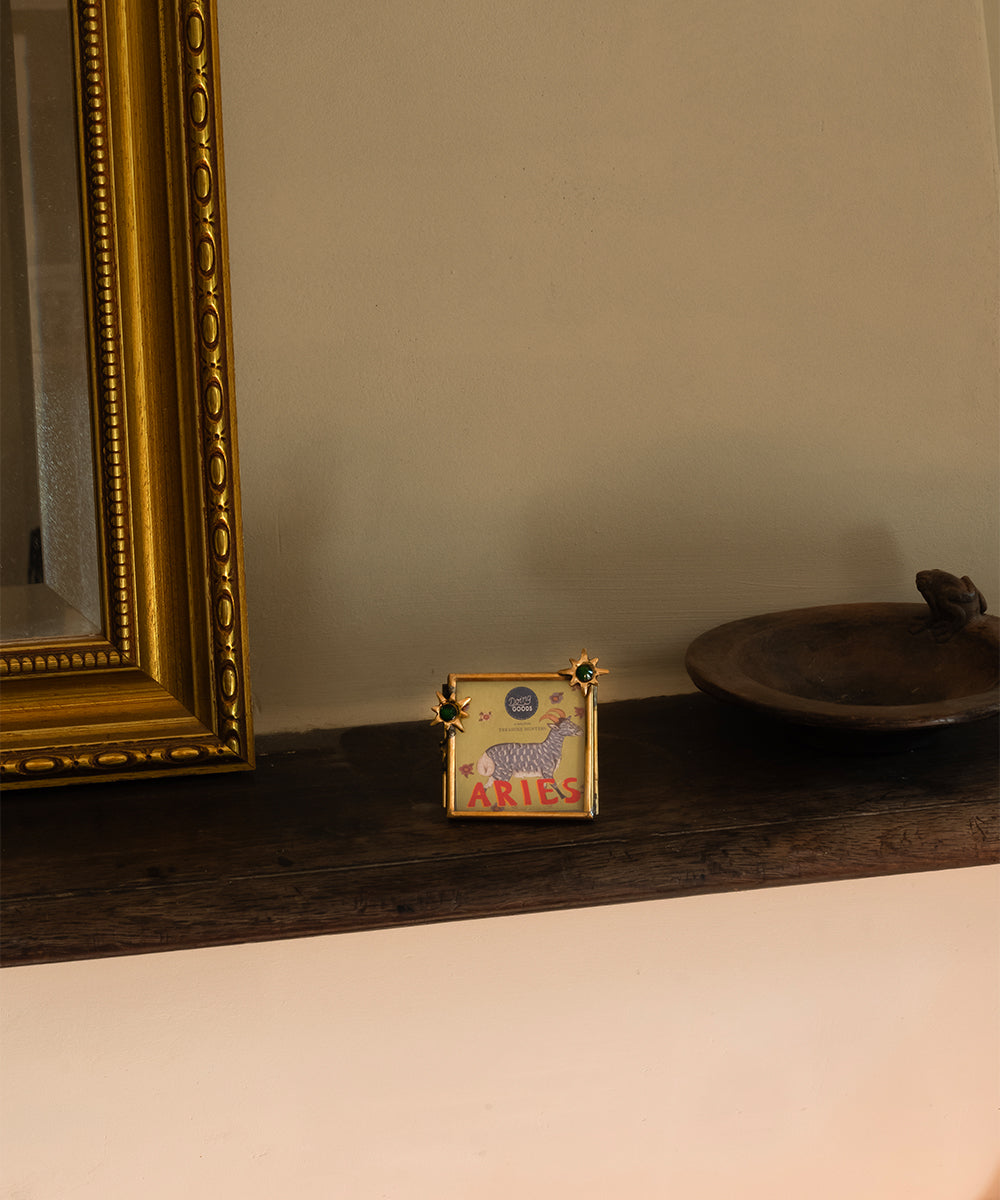 The Aries Zodiac Mini Picture Frame is a powerful expression of the first sign in the zodiac, Aries (March 21 - April 19). This picture frame, exquisitely crafted from recycled brass, showcases the boldness of the Ram with a dynamic inlay design. The vibrant colored stars set against the backdrop symbolize the fiery and pioneering spirit that Aries are known for. It's not only a striking decorative item but also a celebration of the leadership and bravery characteristic of those born under this sign. Ideal for an office or personal space, this frame is a reminder of the potential within to initiate and lead.