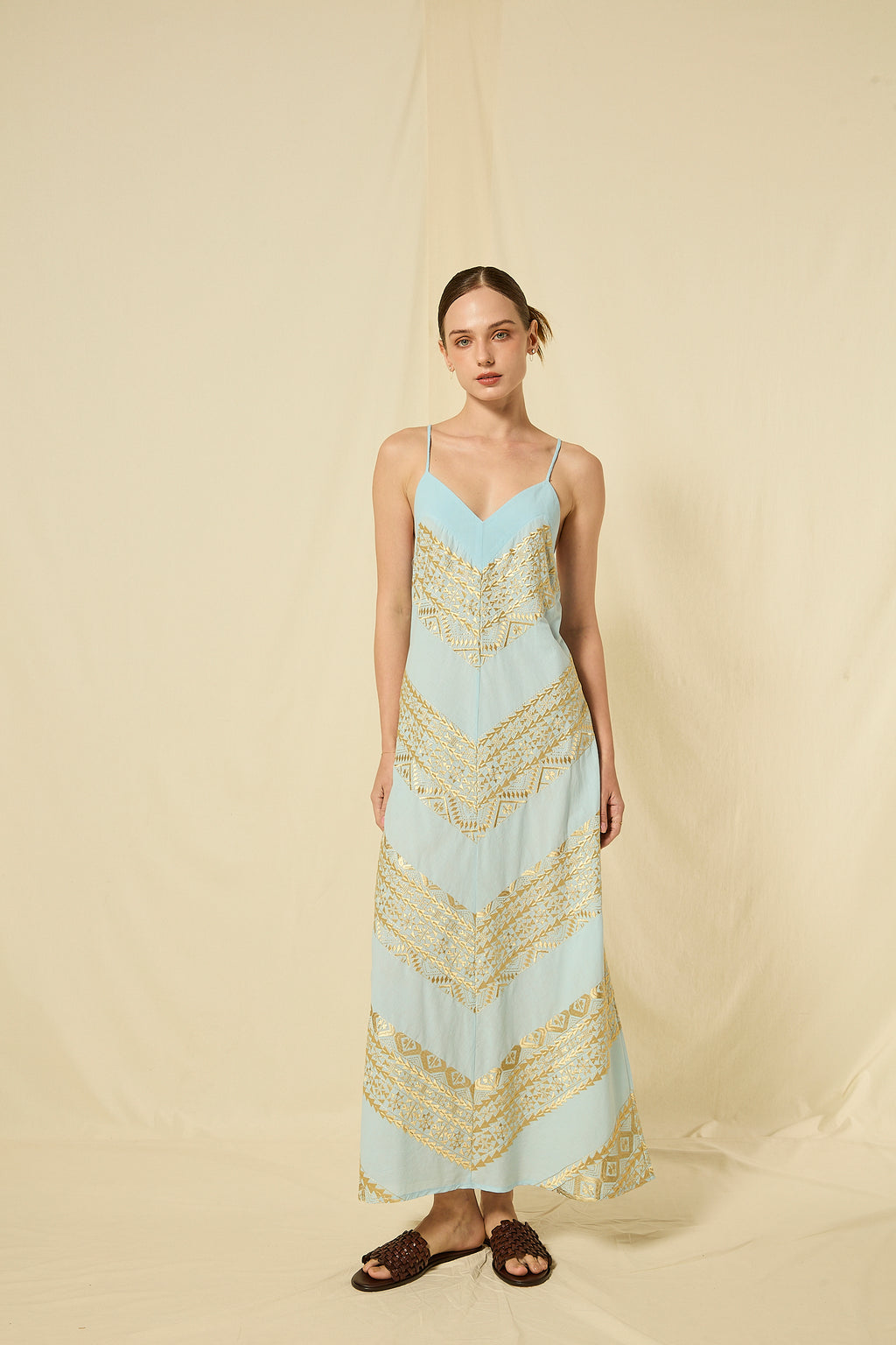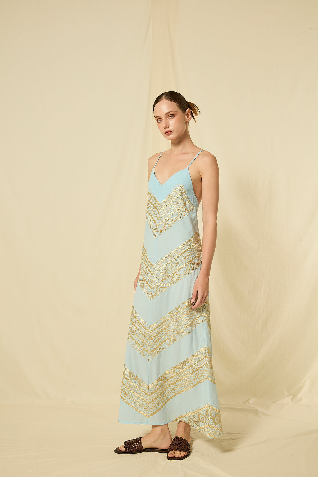 DRESS MAXI CLASSIC TRIANGLE CROSS STRAPS - CIEL/GOLD