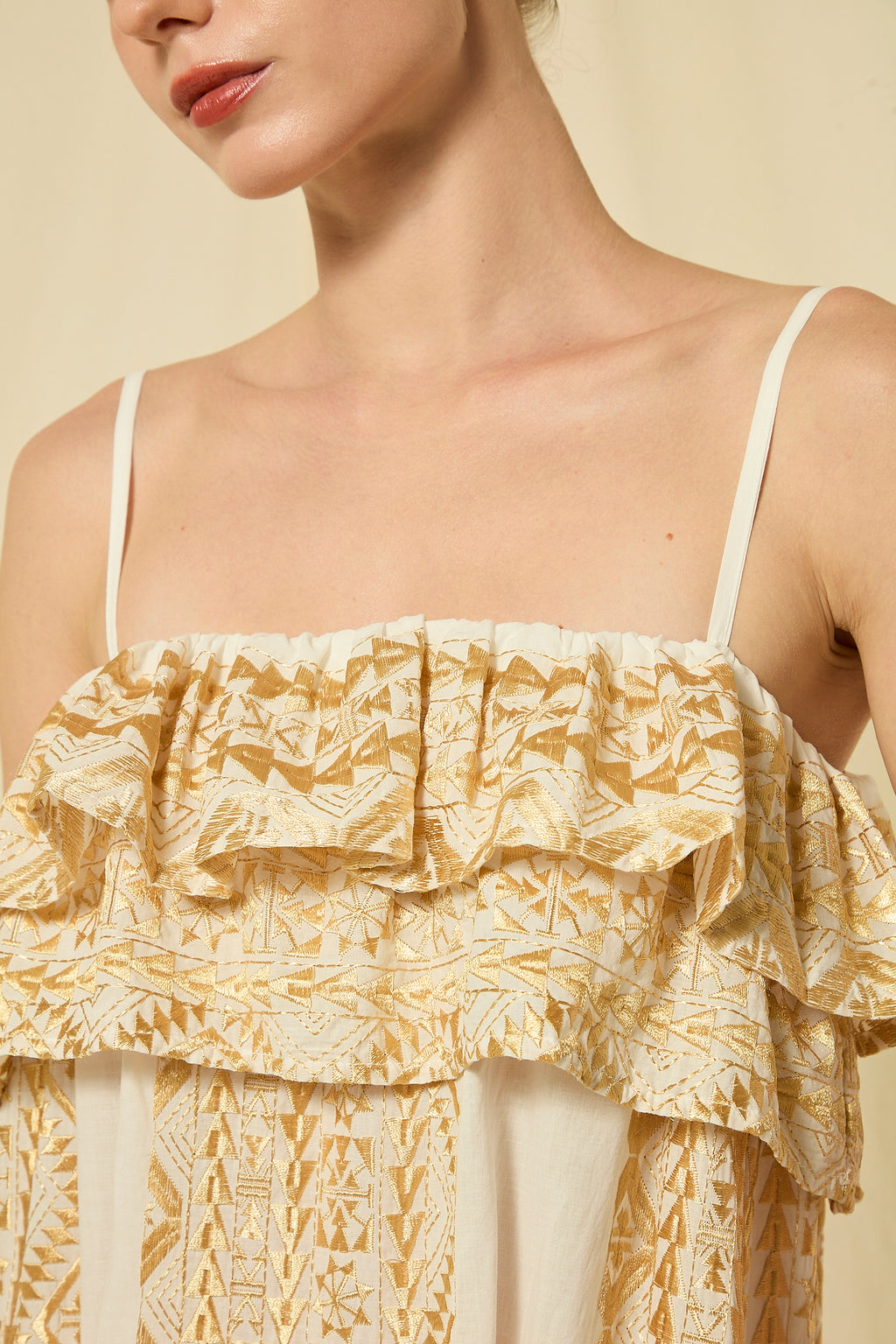 DRESS MAXI CLASSIC TRIANGLE STRAPLESS RUFFLES - WHITE/GOLD
