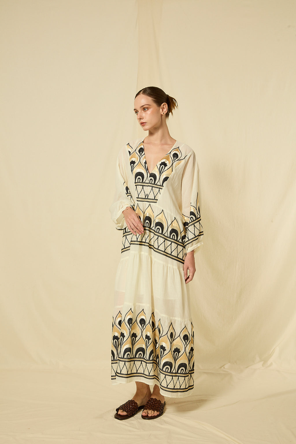 DRESS MAXI PHOENIX L/S GATHERINGS - NATURAL/BLACK