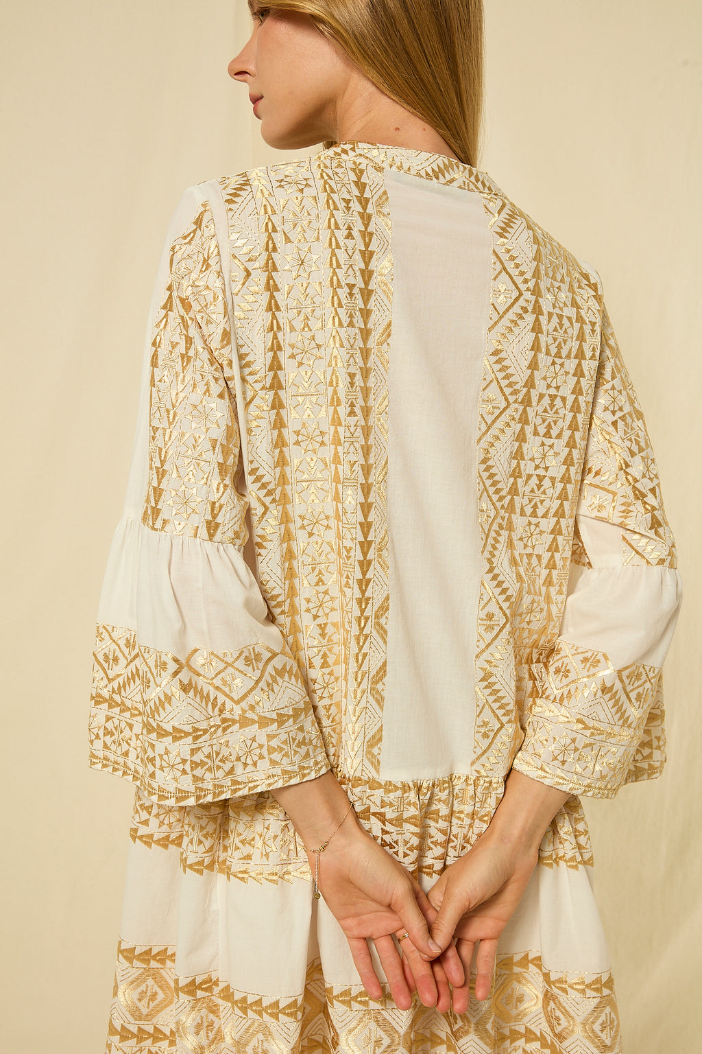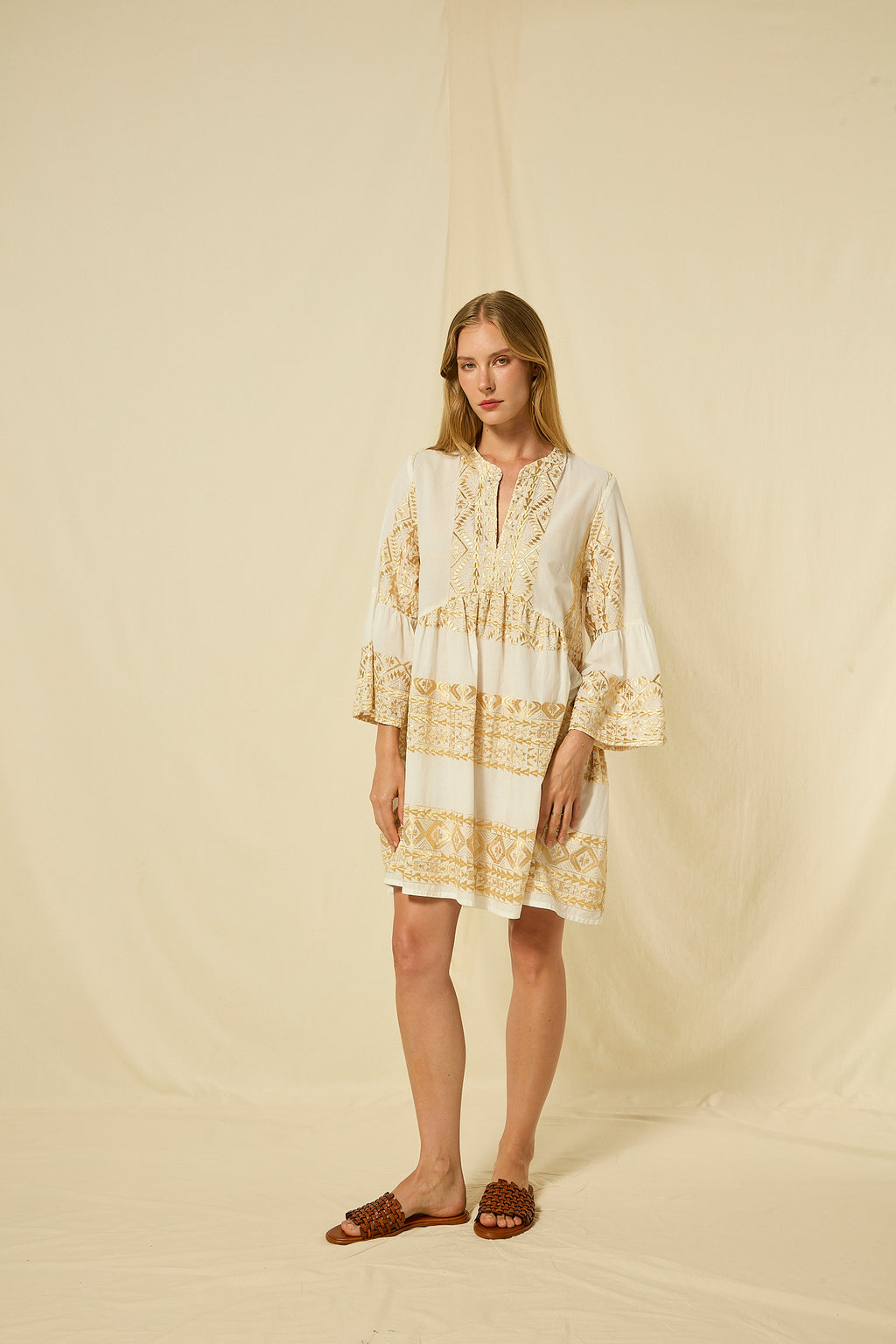 DRESS MINI CLASSIC TRIANGLE BELL SLEEVE - WHITE/GOLD