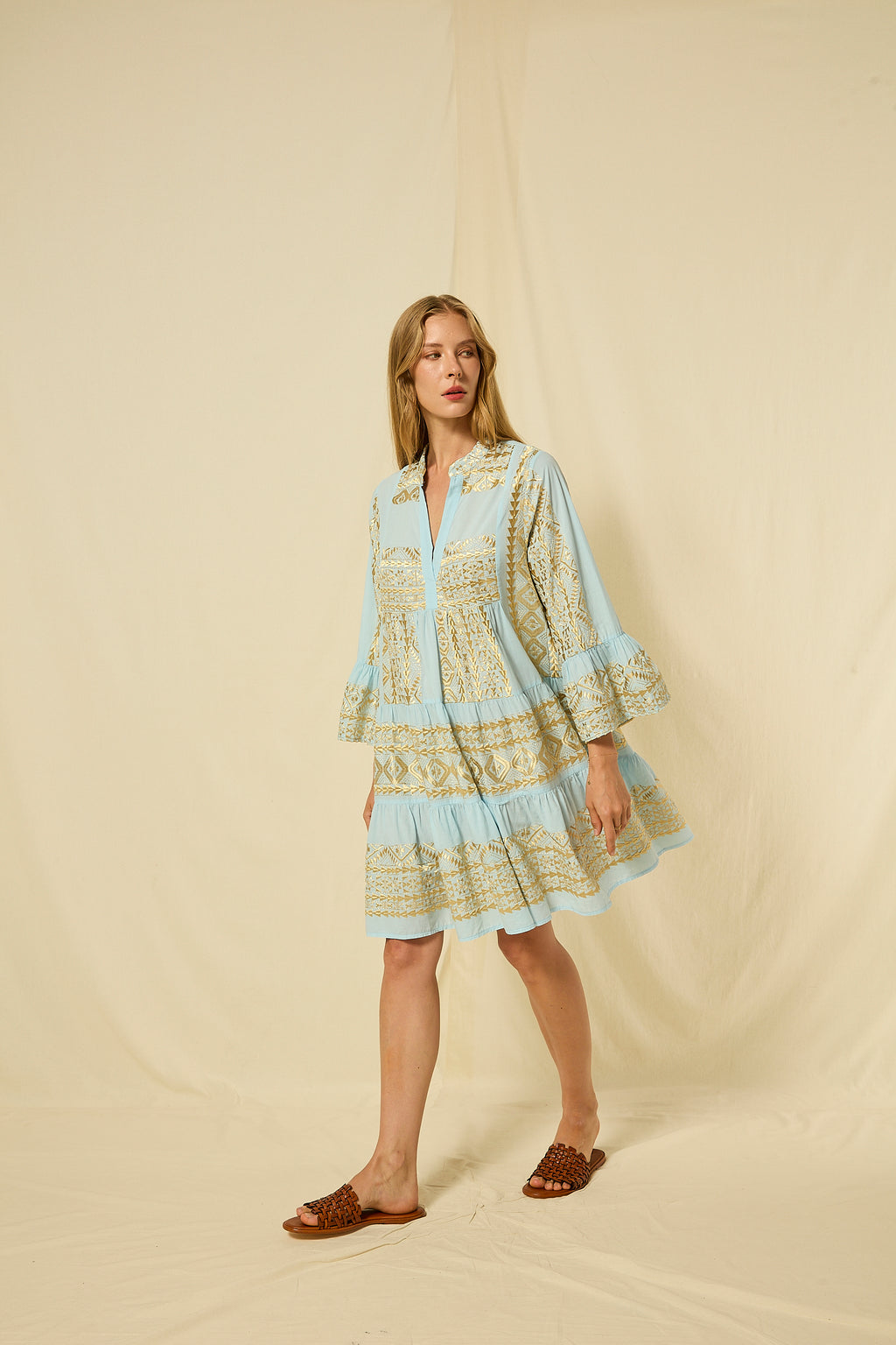 DRESS SHORT CLASSIC TRIANGLE RUFFLES - CIEL/GOLD