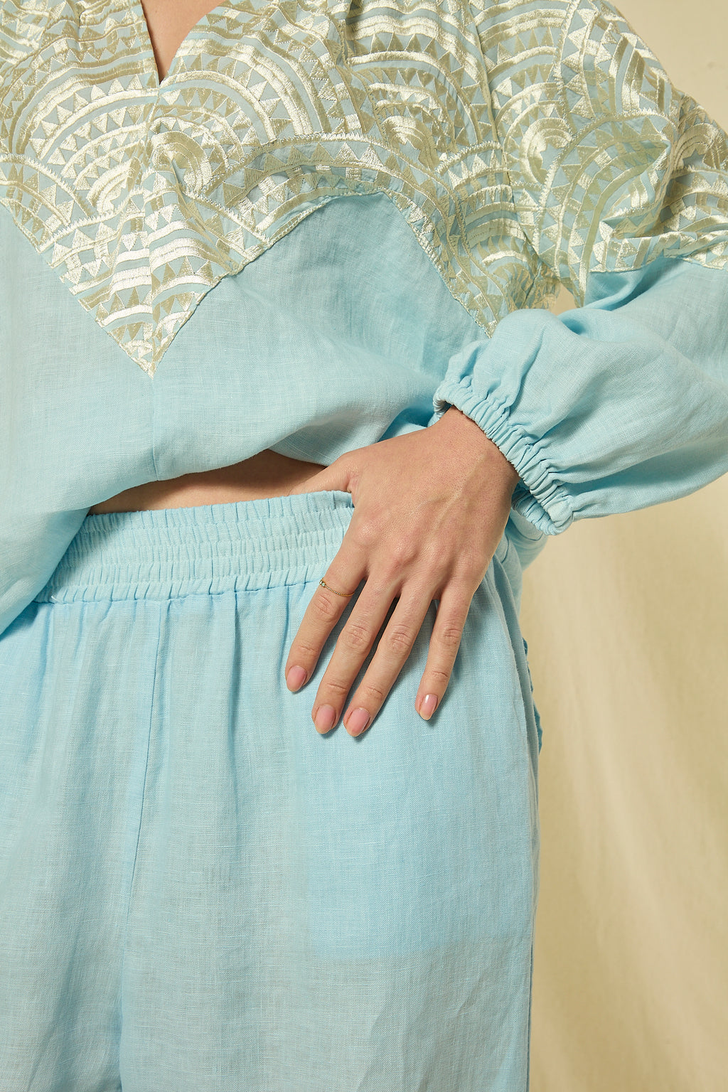 PANTS NEW TRIANGLE ELASTIC WAISTBAND - CIEL/CHAMPAGNE