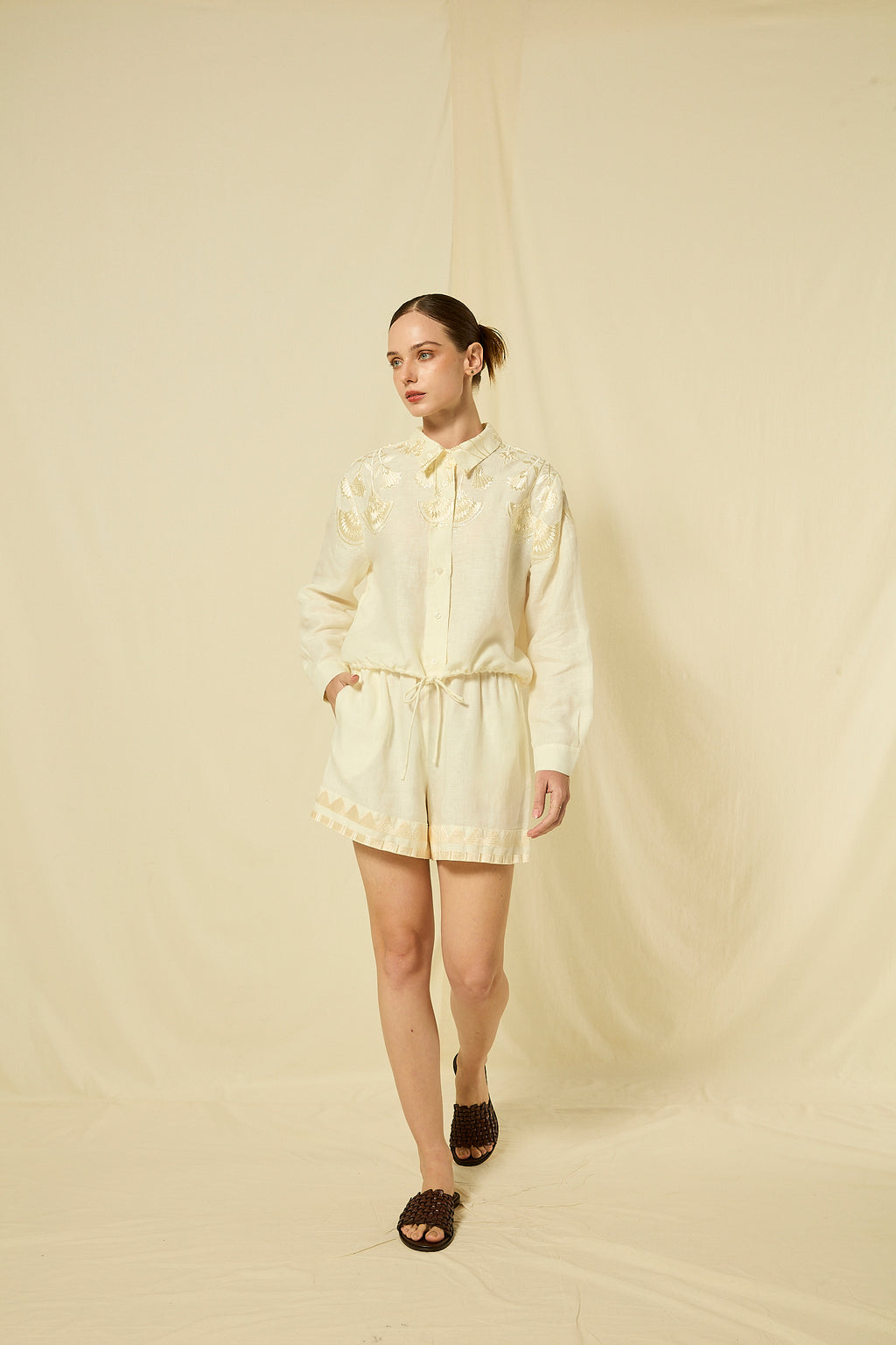 SHIRT PAPYRUS GATHERINGS L/S - NATURAL/CHAMPAGNE