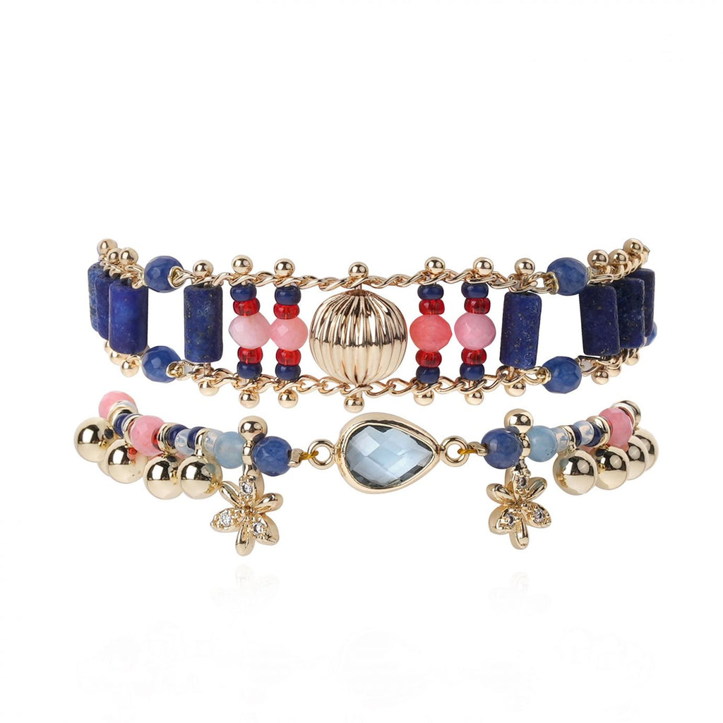 - Multi-link beaded bracelet and clasp in 14-carat 0.05-micron gold-plated copper