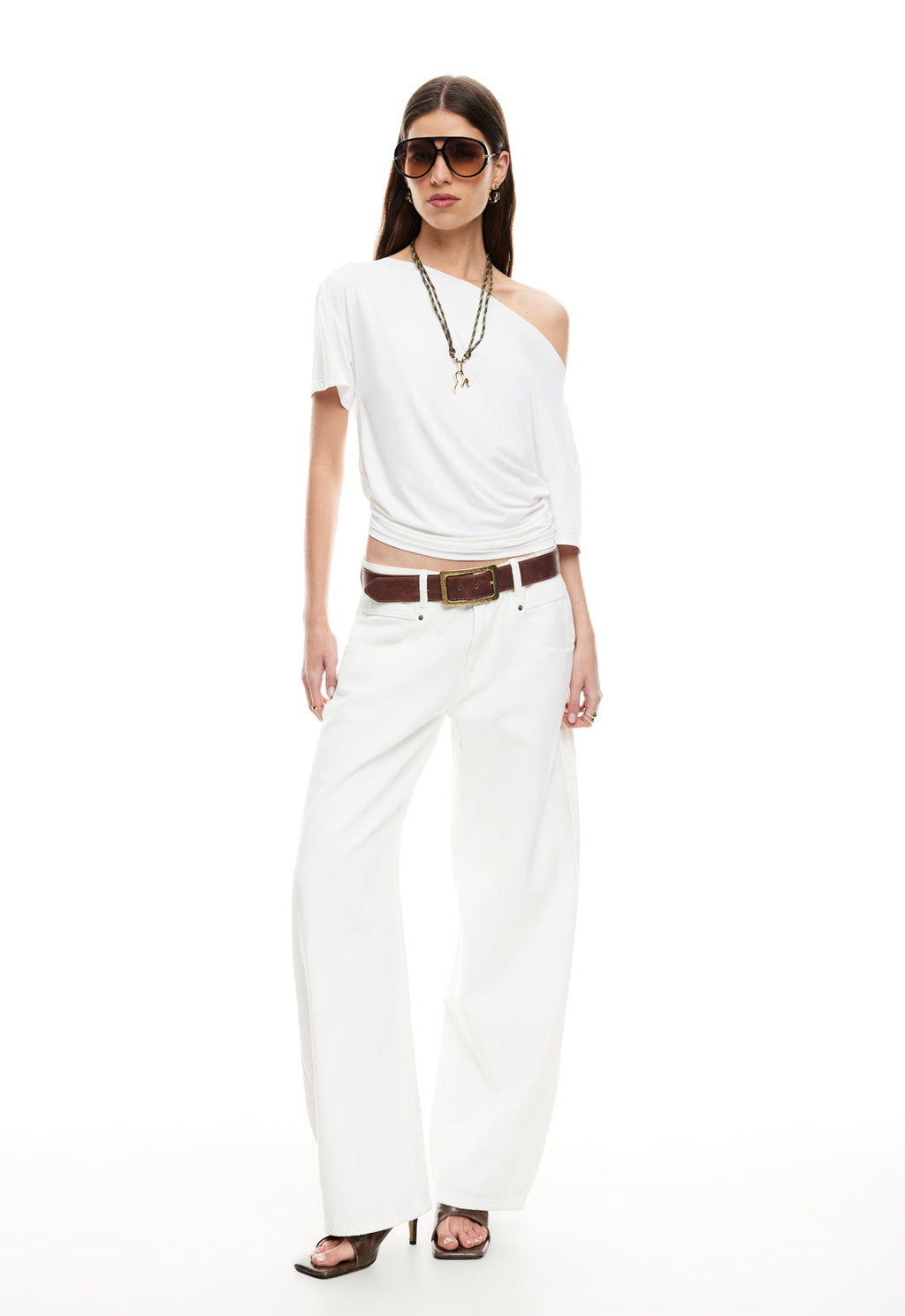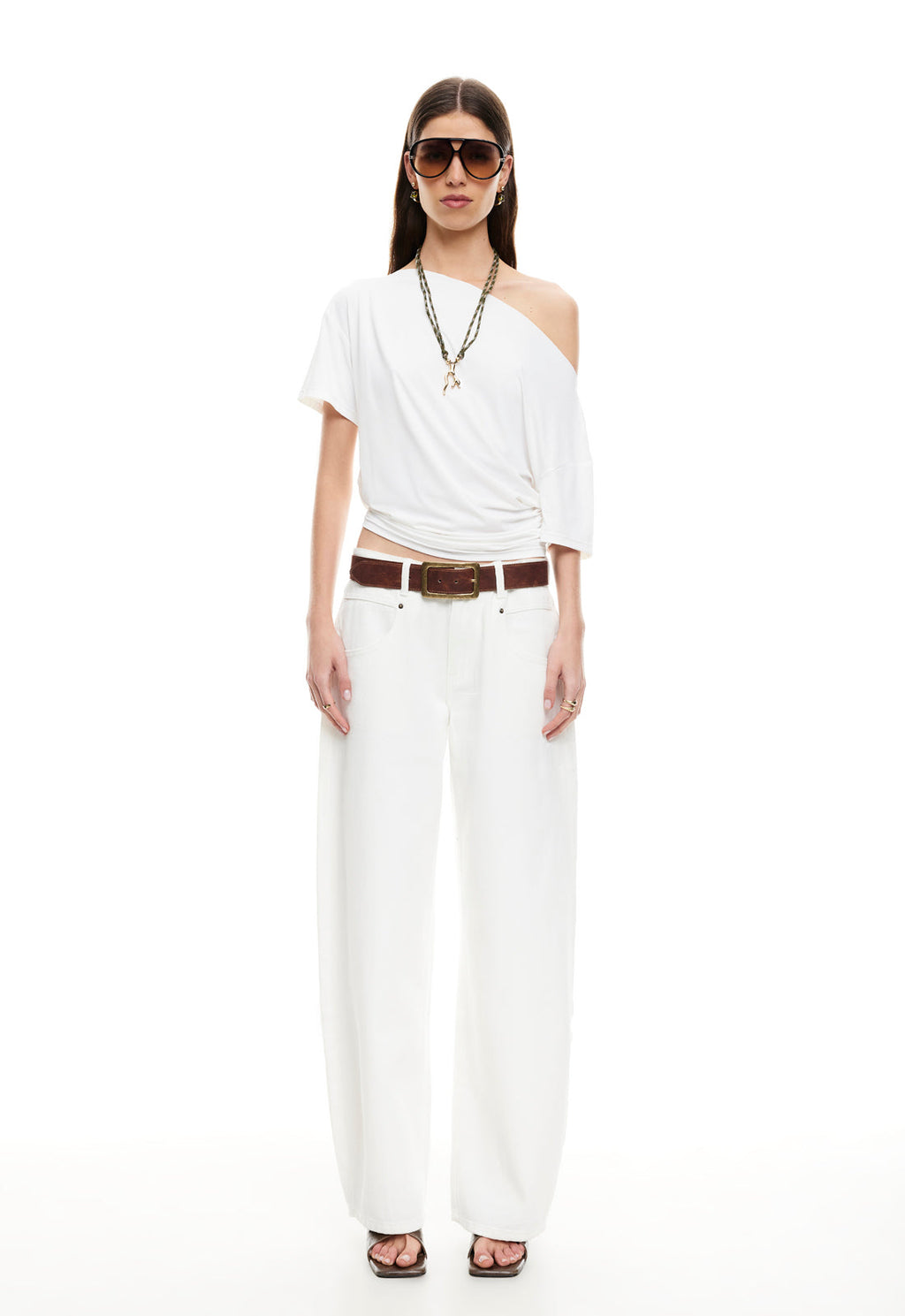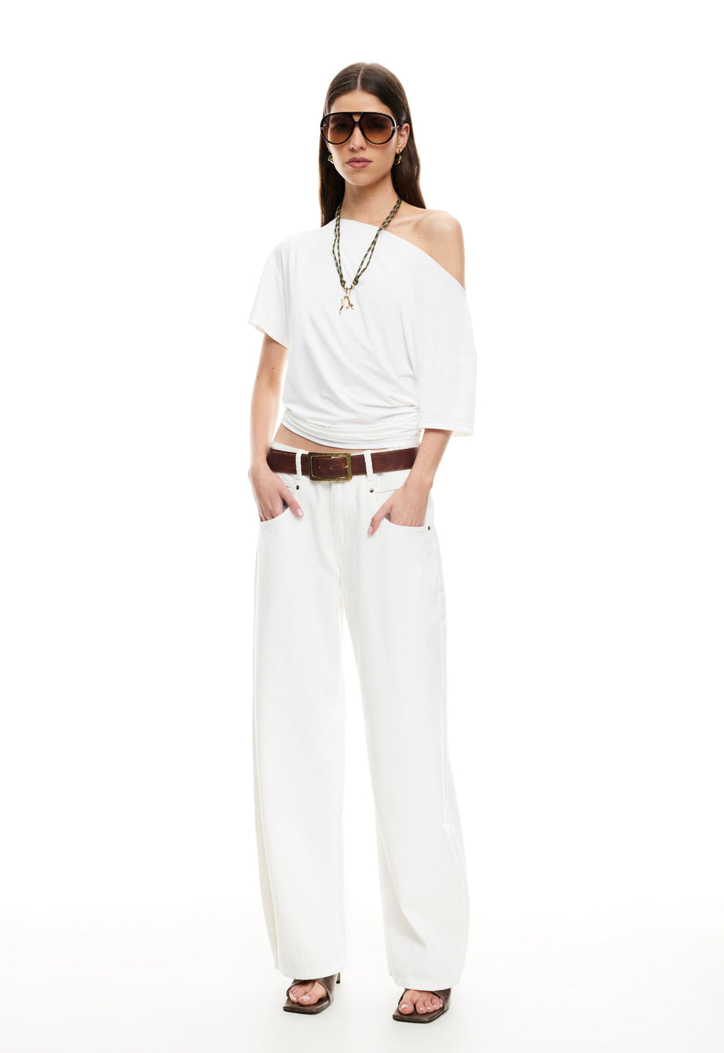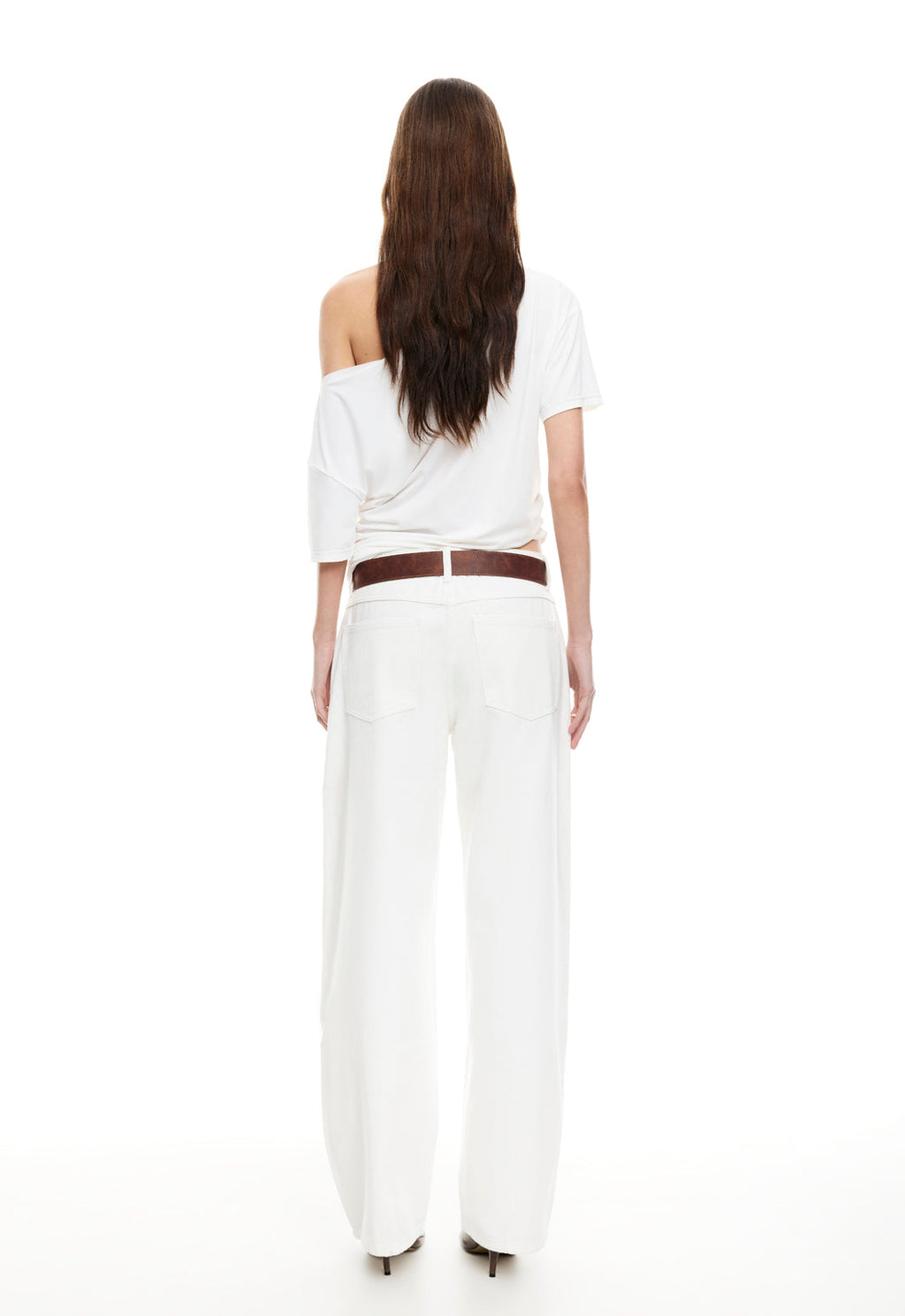 Asymmetric off shoulder neckline