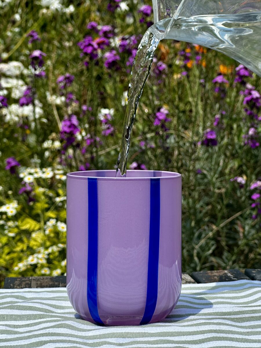 Maegen Atina Stripe Drinking Glass - Navy/Lilac