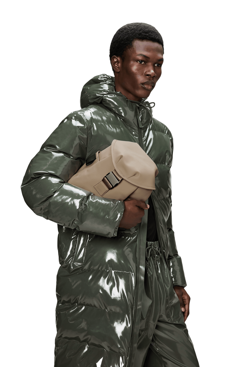 The backpack is cut from Rains’ signature PU fabric with coating on a softer backside. Design has a relaxed aesthetic, yet great durability and well-known waterproof performance.