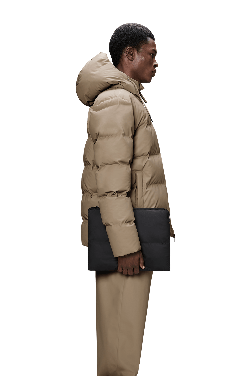 This laptop sleeve is cut from Rains’ signature waterproof PU fabric. Design has a puffed and soft aesthetic with great durability.
