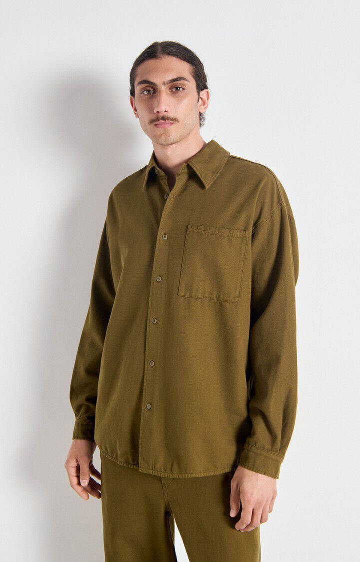 The Lycaz men's long-sleeved shirt has a minimalist workwear feel. Made from pure cotton, its Italian-made fabric is both lightweight and structured. Wear it as a complete look with trousers, a bag and a cap from the same Lycaz range.