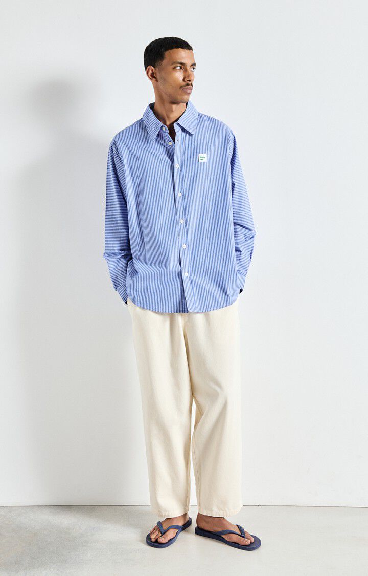 The Lycaz balloon trousers for men stand out with their super wide cut and minimalist workwear style, offering a bold urban look. Made from a lightweight, structured Italian woven fabric, they guarantee comfort and premium quality. Their elasticated waistband with drawstring ensures an easy and comfortable fit. Wear as a complete look with the shirt from the same collection or pair with a thick knit for an elegant contrast of textures.