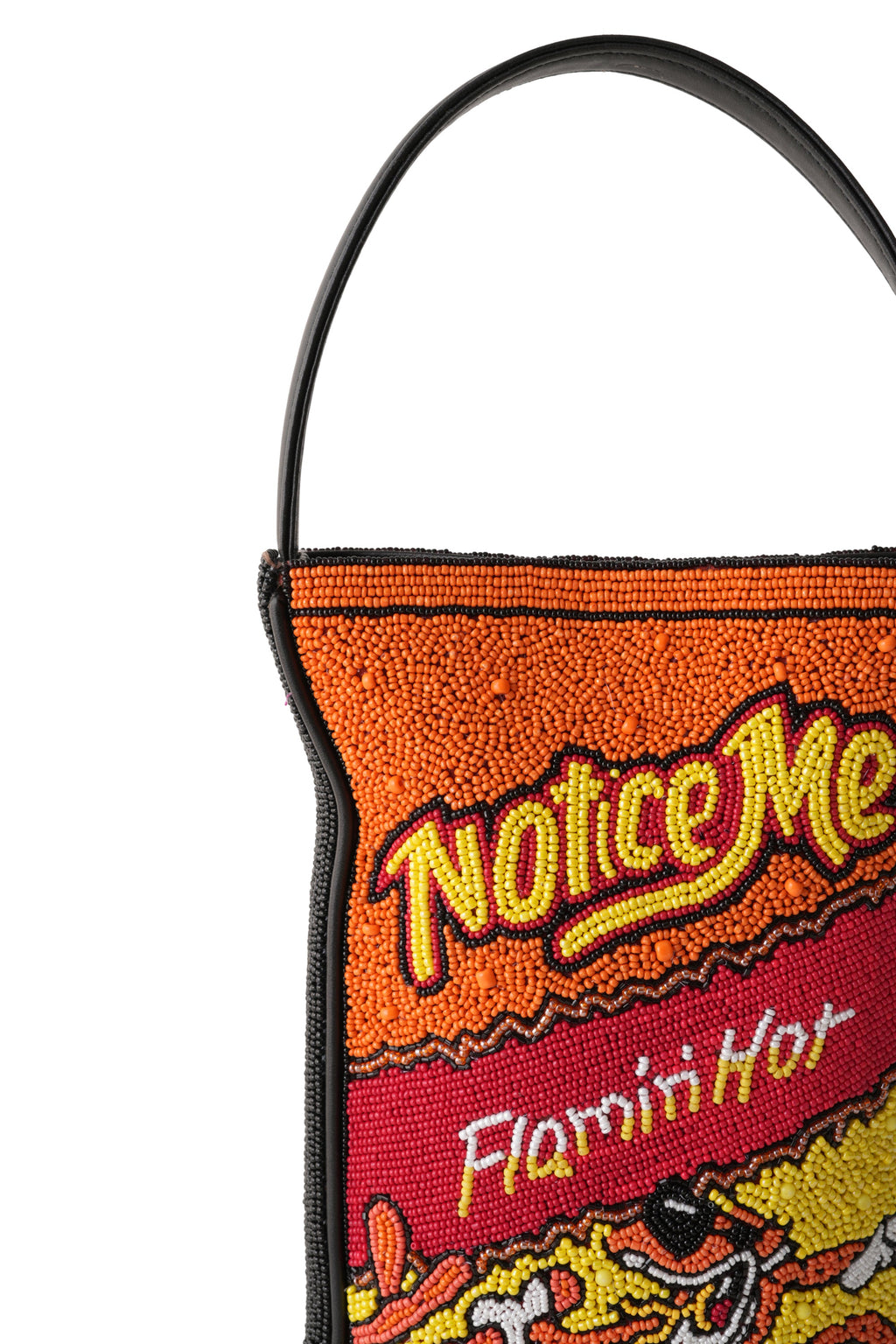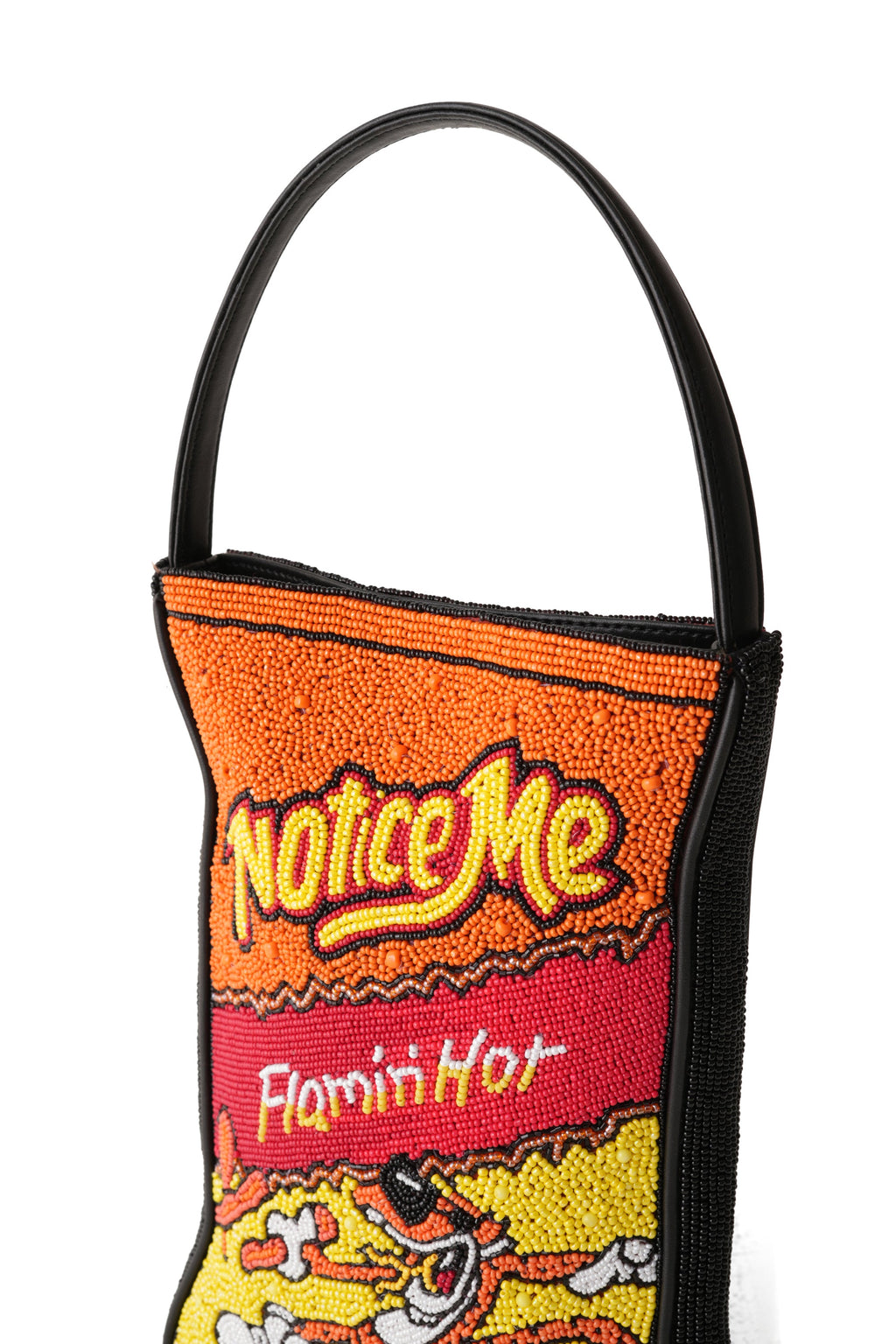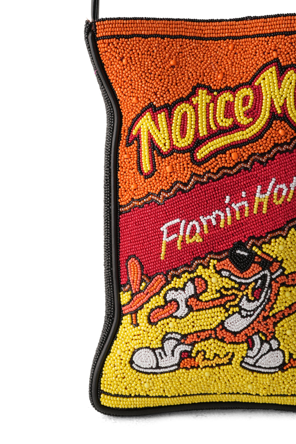 Some bags hold things. This one holds power. Inspired by the fiery crunch of Cheetos, this beaded beauty adds a spicy pop to any outfit. Perfect for those who like their accessories like their snacks, extra hot and impossible to put down.