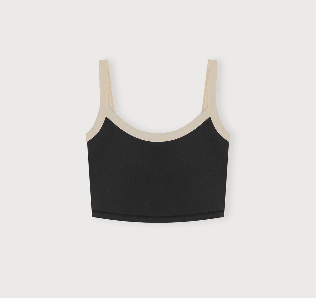Square neckline with contrast white binding for a sporty touch