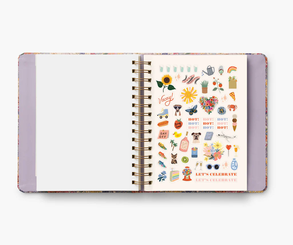 Start planning ahead with this 2025 17-month planner. A sturdy hard cover wraps over the interior spiral binding, and an elastic band holds the pages closed. Inside youÕll find monthly and weekly views, inspirational quotes, sections for celebrations, notes and contacts, pocket folders for storage, and three sticker sheets for extra fun. Planners span August 2024-December 2025.