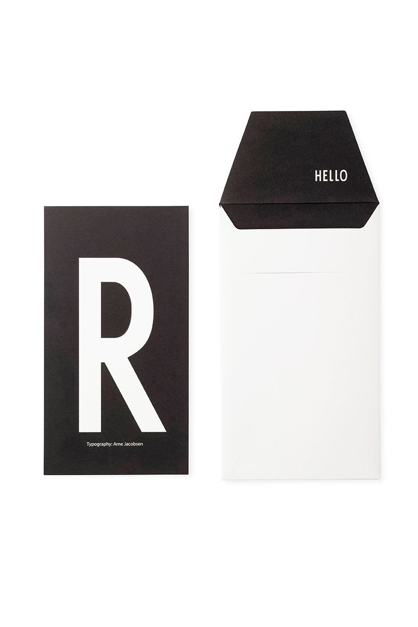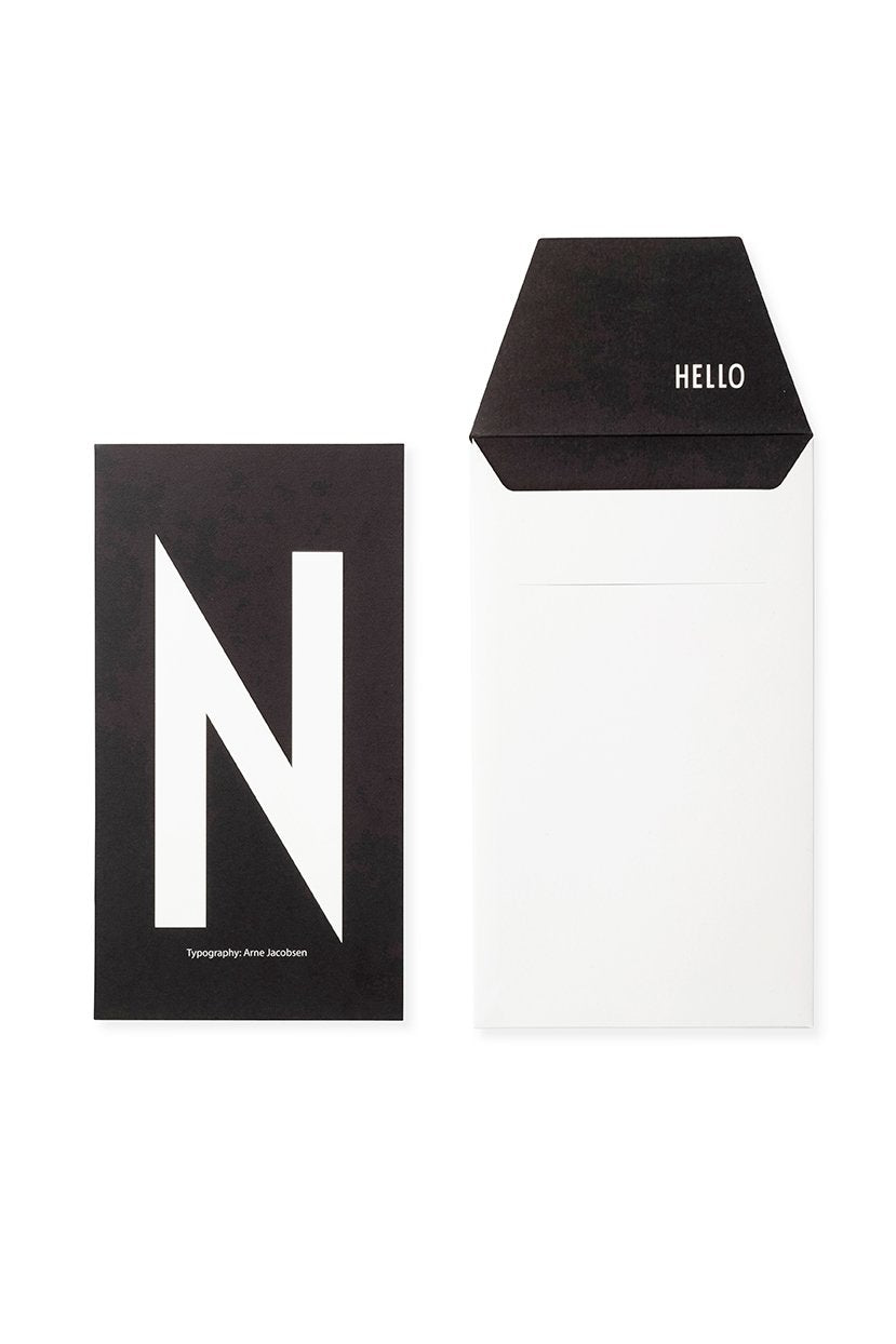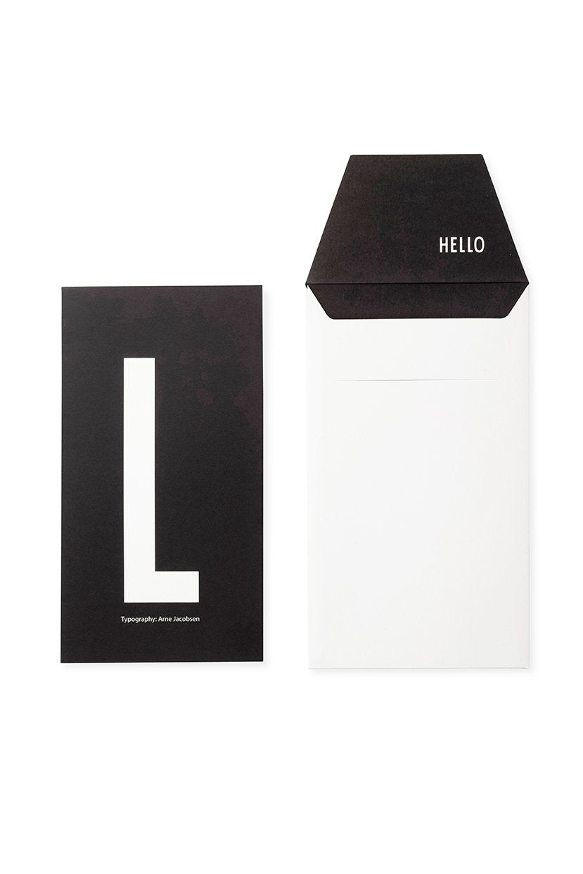 One set includes a matching card and its envelope; White envelope with black letter, black card with white letter.