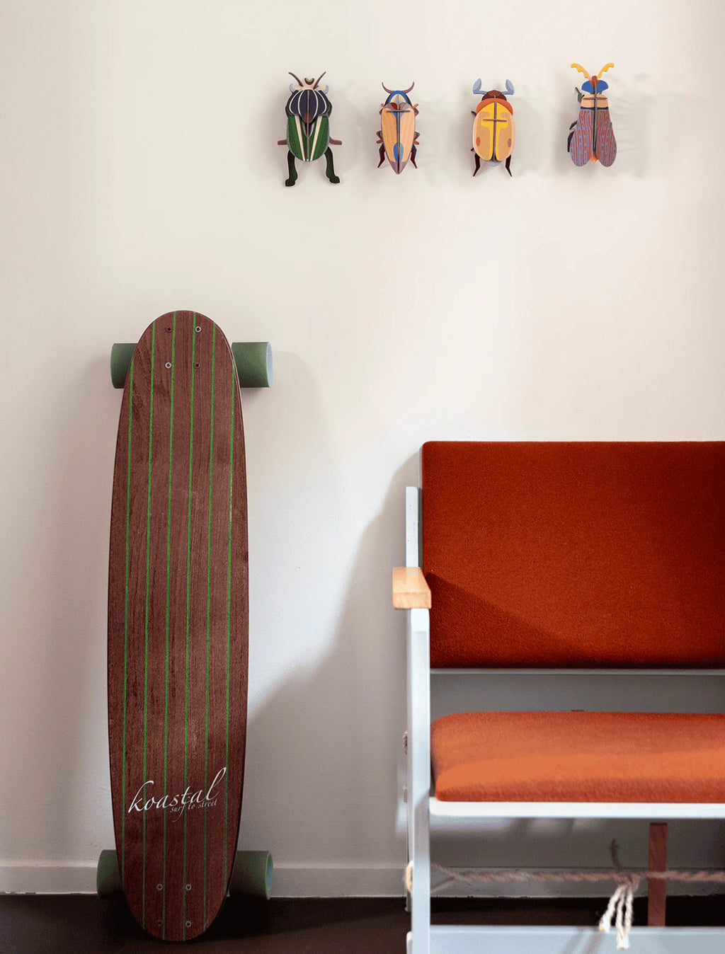 As small as they may be, insects are of great importance for the earth’s vitality. How extraordinary that they can now also tell their story in your home! Printed on recycled cardboard using vegetable ink, these colourful creatures with their bright graphic patterns allow you to add a little beauty to both your home and the world.