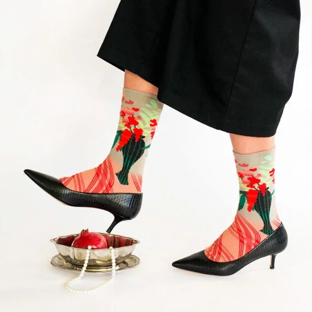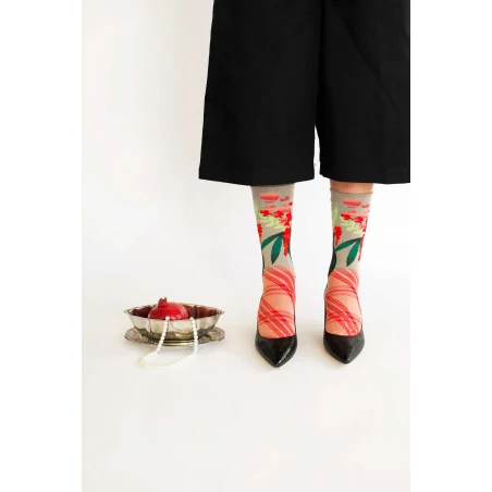 The French brand Bonne Maison creates high quality socks with Egyptian cotton and an elastane double thread. These mid-calf length socks are machine washable at 30/40? C. The composition of these thin socks is: 90% cotton, 8% Polyamide, 2% Elastane. This perfect mix offers to the sock’s solidity & comfort. The production of these sheer knitted socks is made in Portugal.