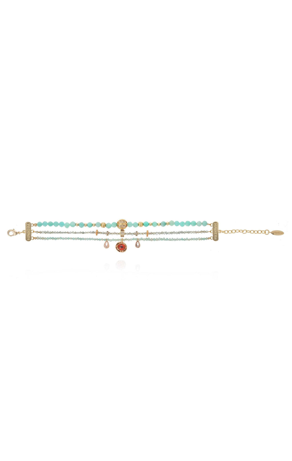 - Multi-link beaded bracelet and clasp in 14-carat 0.05-micron gold-plated copper
