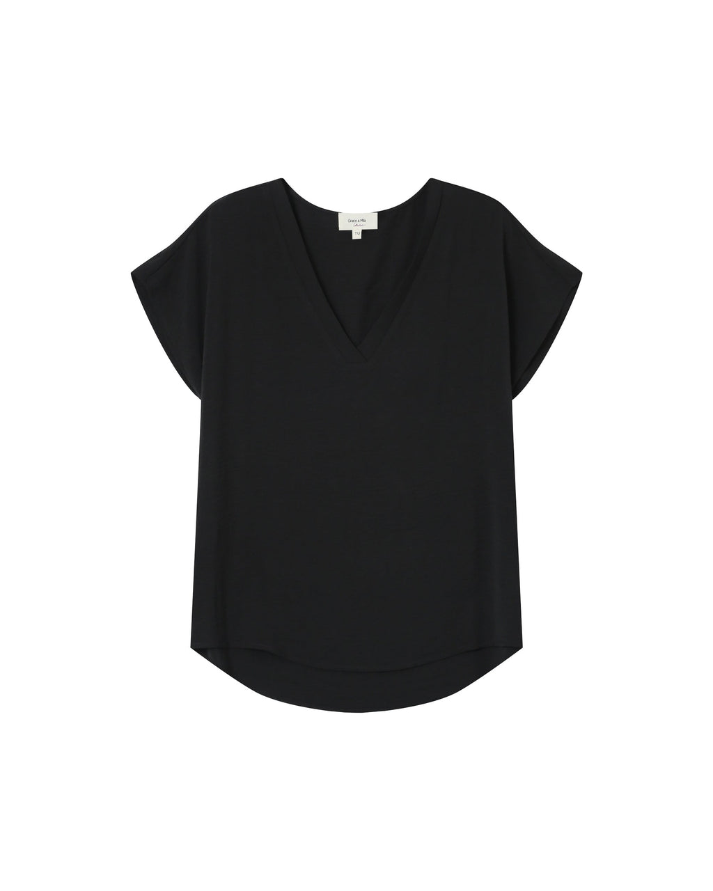 SEASON_FW2517054_NOIR The SEASON fluid top is part of the collection\'s essentials. The kimono sleeves and V-neckline create a classic, feminine silhouette, perfect for everyday wear. The straight cut of the SEASON short-sleeved top flatters every woman\'s curves.
