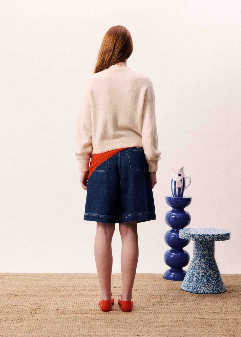 • Wide-leg denim shorts