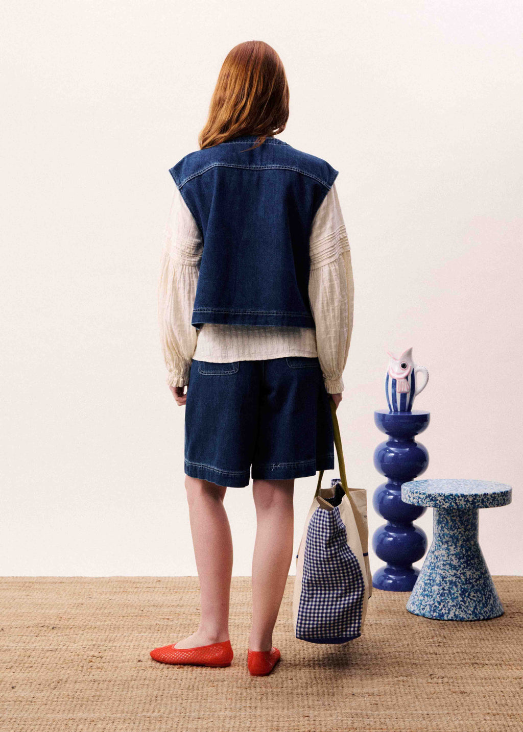 • Sleeveless denim vest, straight cut
